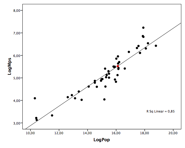 É curioso verificar que, feito este ajuste linear, Portugal é o país mais próximo da linha resultante. Face à realidade europeia é impossível argumentar que temos mais ou menos deputados que aquilo que seria de esperar para um país com a nossa dimensão.